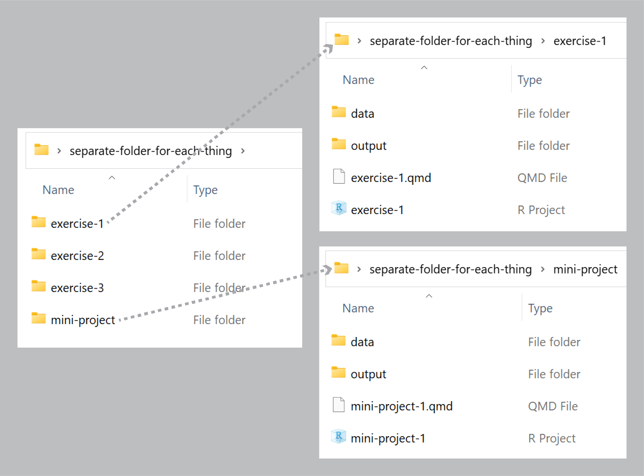 Each exercise has its own .Rproj file. Keep each exercise in its own folder — this makes it much easier to manage file paths and avoid confusion between projects.