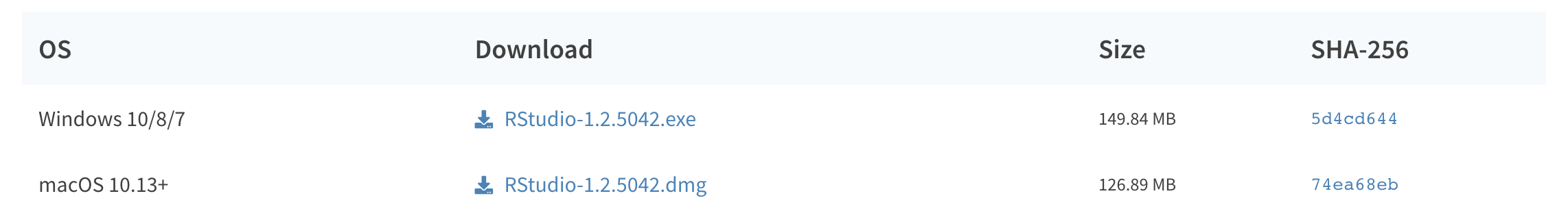 If not, scroll down a little to the large table and choose the version of RStudio that matches your operating system.