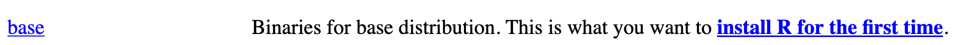 If you use Windows, click “base” (or click on the bolded “install R for the first time” link) and download it.