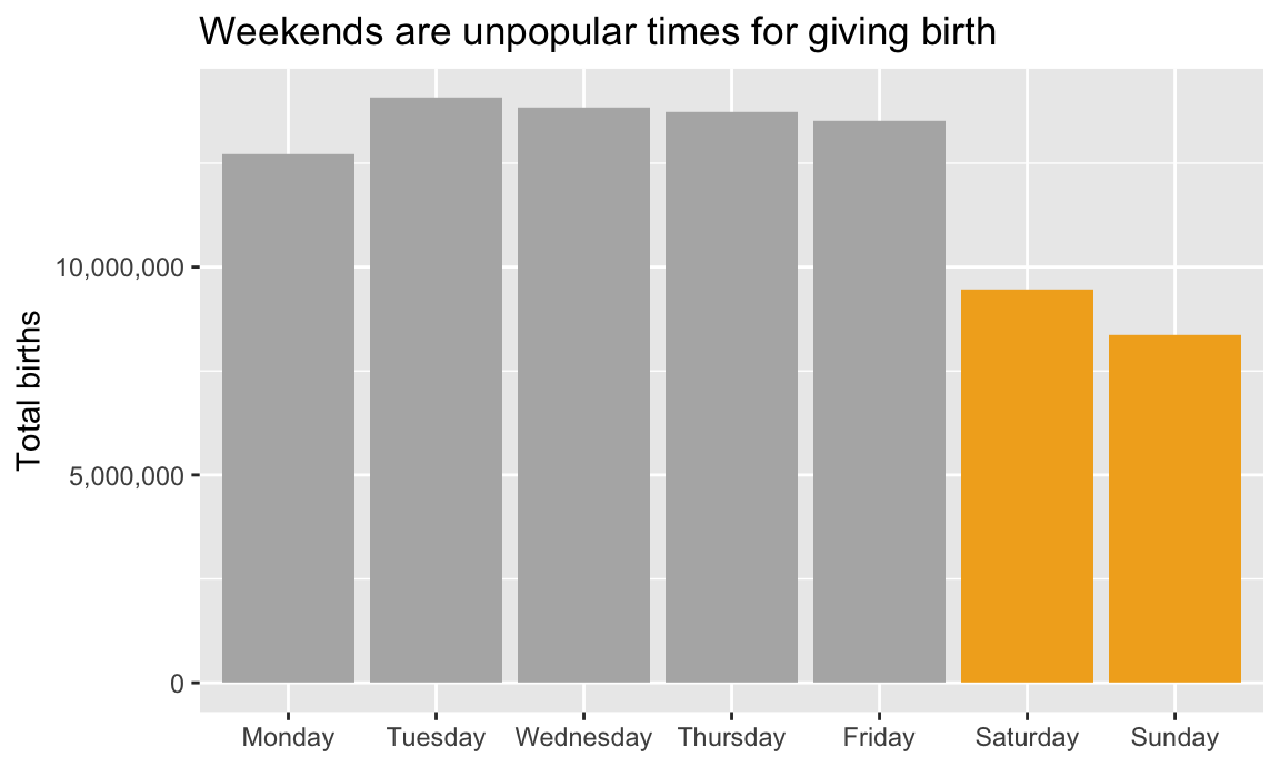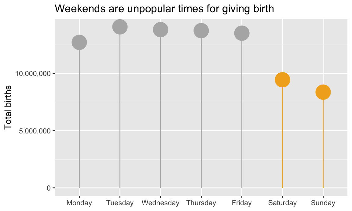 labs(title = "Weekends are unpopular times for giving birth",