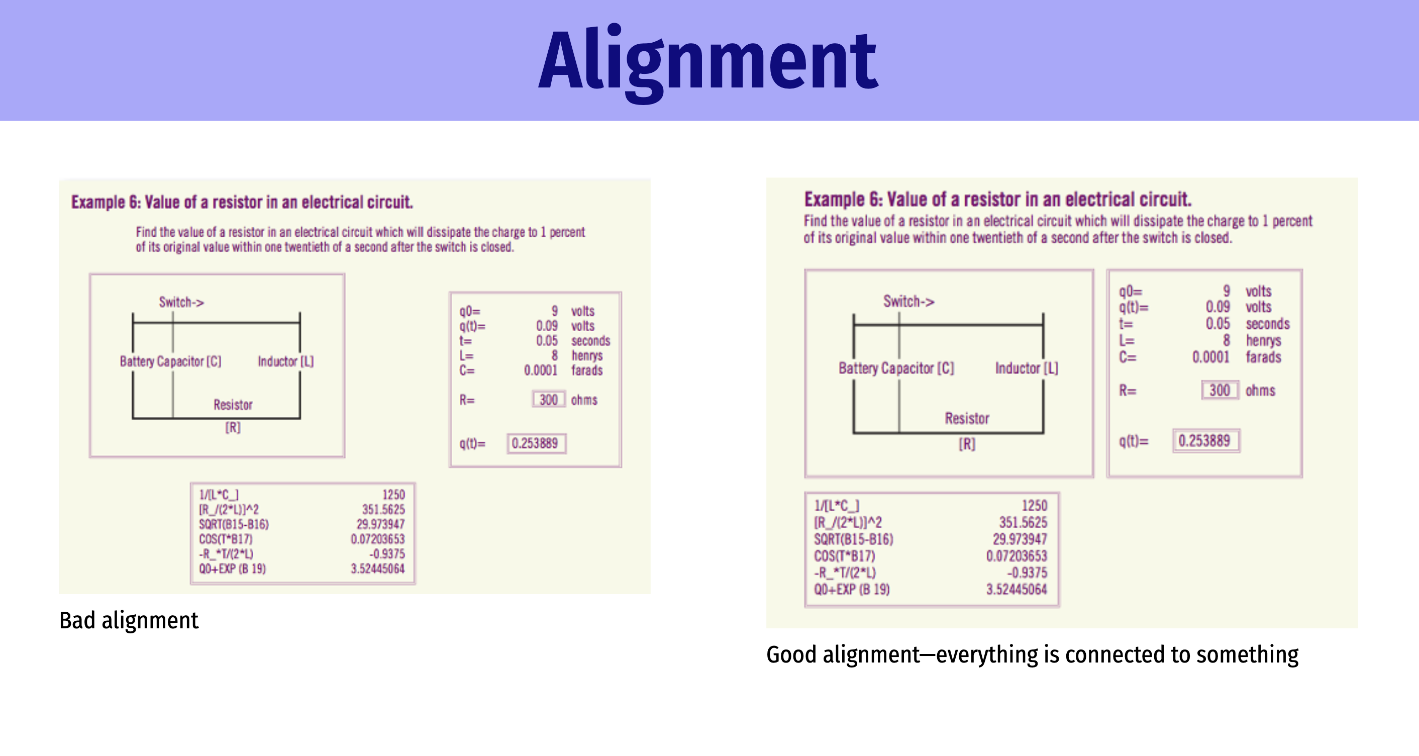 Two people can take the same content and—iteratively working through CRAP and making sure everything has contrast, repetition, alignment, and proximity—create completely different designs for it. This checklist doesn’t provide any universally correct answers, and none of the principles are more or less important than the others.